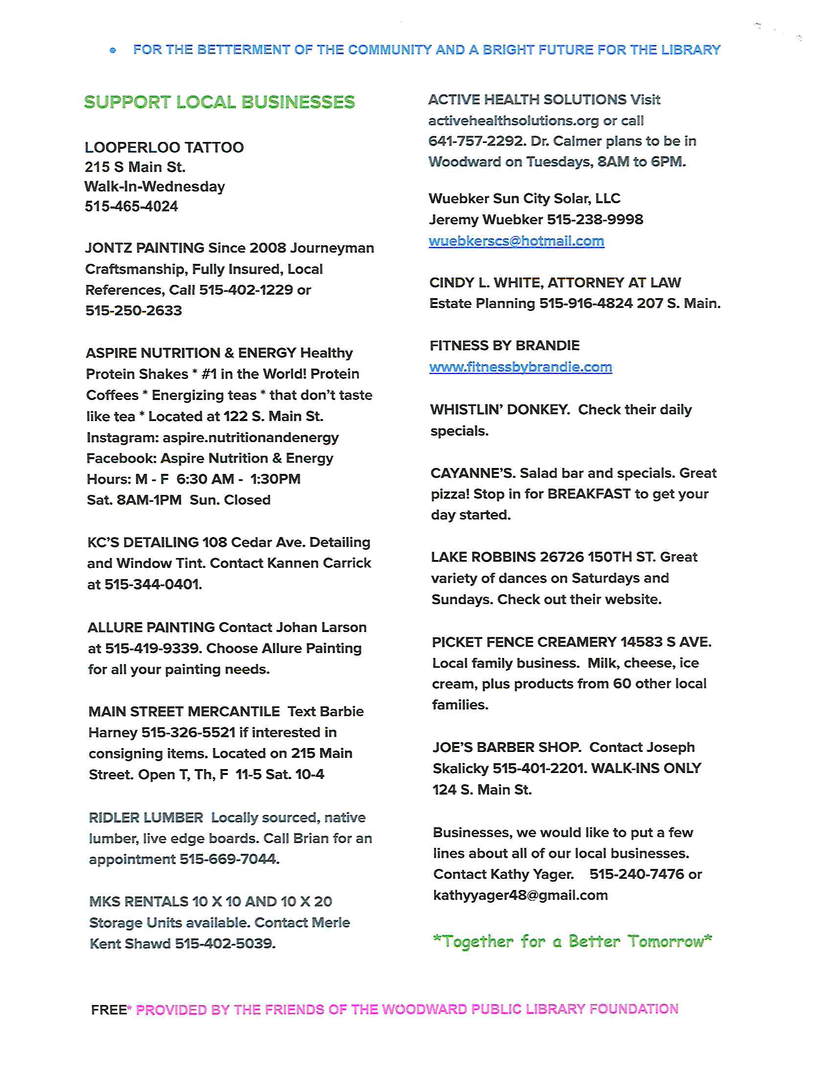 118 S. Main Street, Box 510 Woodward, IA 50276