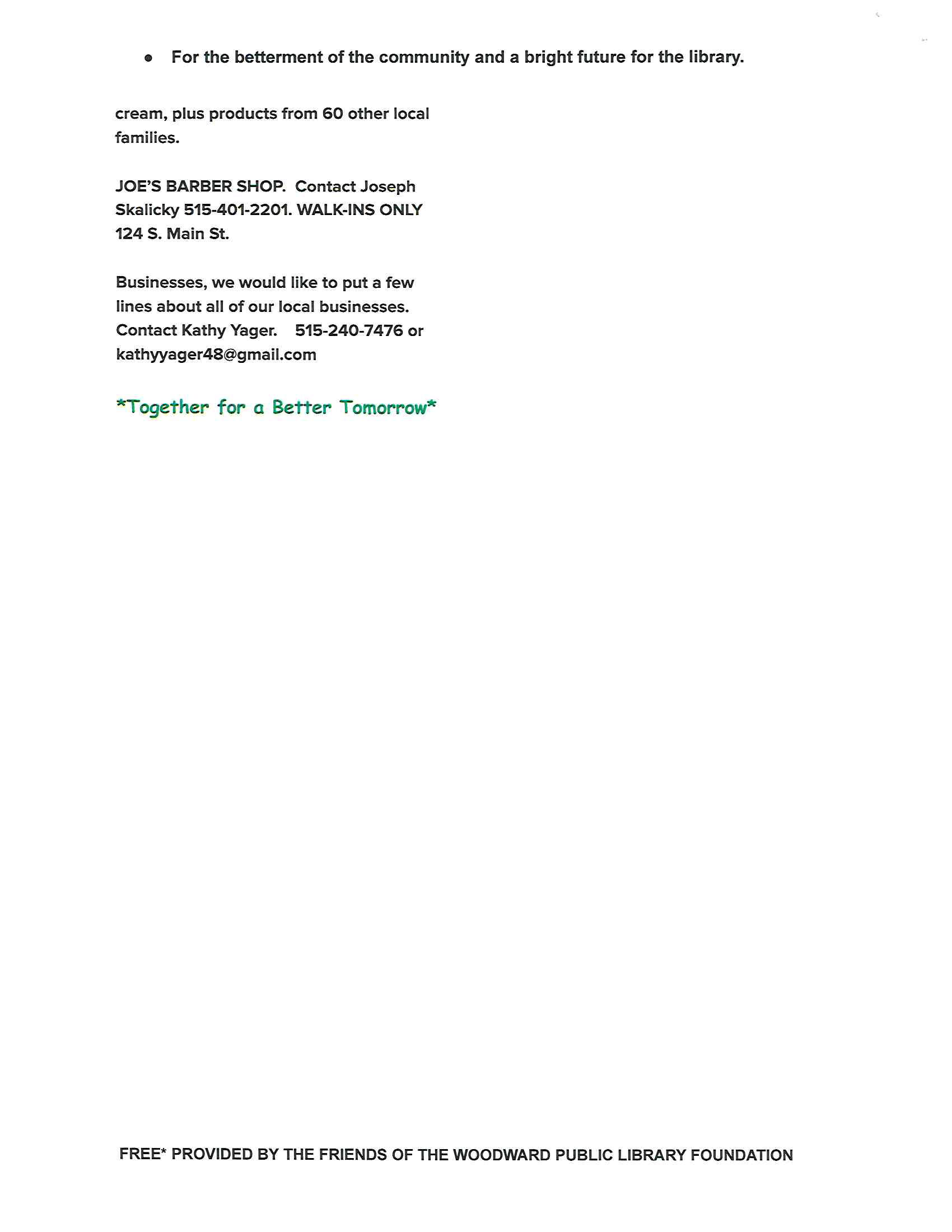 118 S. Main Street, Box 510 Woodward, IA 50276